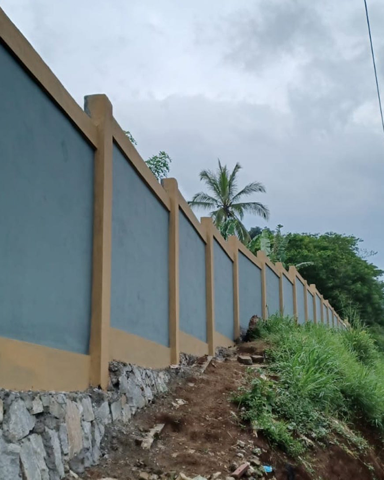 Pembangunan pagar beton ini dikerjakan untuk membatasi area sekaligus meningkatkan keamanan lingkungan. Desain pagar dibuat kokoh dan rapi agar menyatu dengan tata ruang sekitarnya.